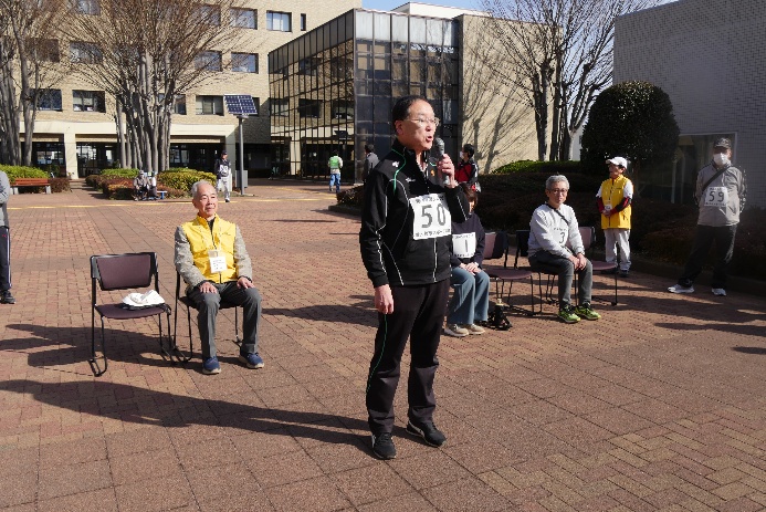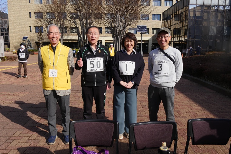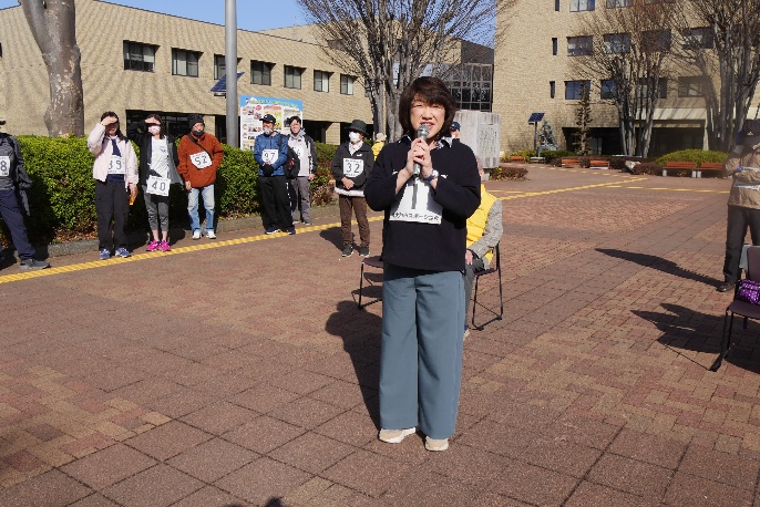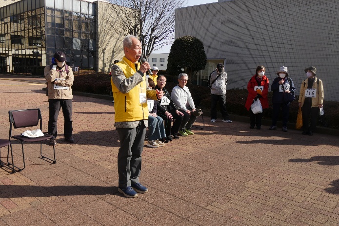 令和8年3月1日(日)第45回歩こう会を開催しました。天候も晴れてこの時期としては気温も高く、寒さを感じない絶好の日和となり、中央公民館前には和地市長以下来賓の3名にお越しいただき、定刻の9時には117名の参加者と役員従事者50名、総勢163名の参加の中、和地市長、木戸岡副議長のご挨拶をいただき開会式を行いました。